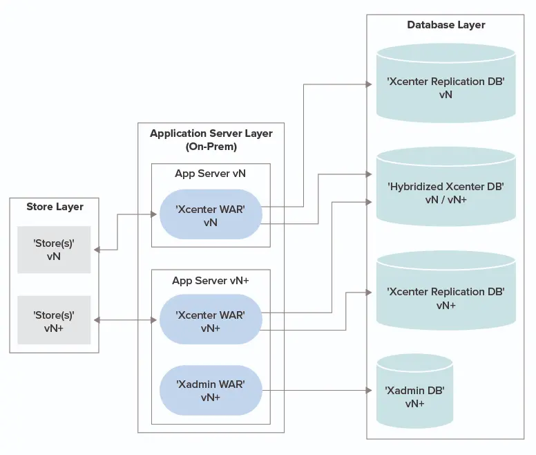 In this approach, retailers continue to operate on their existing on-prem infrastructure while upgrading the Oracle Retail Xstore application stack to a newer version. This option is often selected when retailers want to minimize disruption and avoid introducing infrastructure change during the upgrade process.