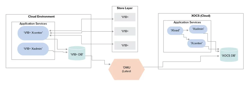 - The existing XCenter DB is backed up and restored on the cloud, followed by recurrent data migration to bring in the latest transactional data.