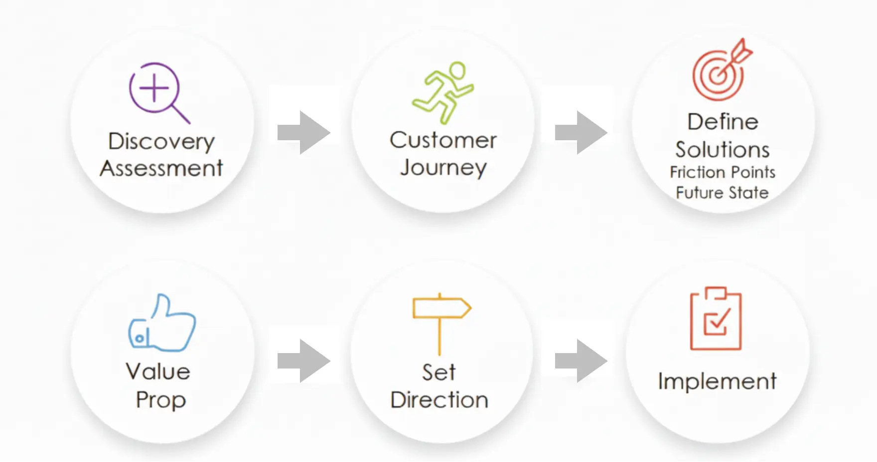 • Process: Discovery assessment → Customer journey mapping → Identify friction points & future state → Build value proposition → Implement